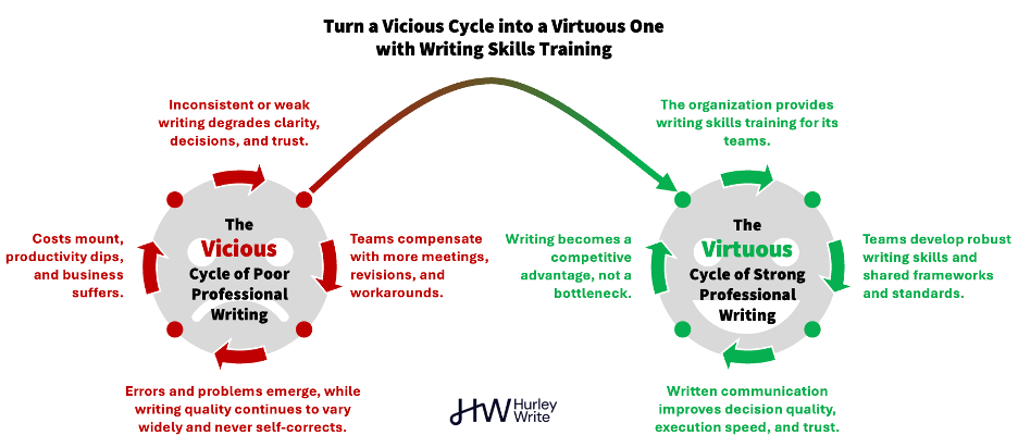 Yes! Poor writing produces problems that will impede business performance; strong writing will boost business prospects. Even more significantly, whether writing works well or poorly at an organization will often turn into either a virtuous or vicious cycle, accelerating either the negative outcomes or the benefits gained over time.